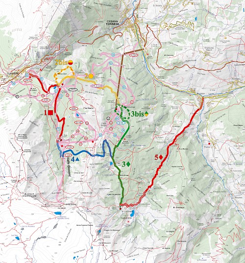 Tutti i percorsi indicati vengono ritenuti sicuri in condizioni normali e sono segnalati sul terreno; è raccomandato seguirli per non disturbare la natura e per non correre il rischio di perdere l'orientamento. La variabilità delle condizioni ambientali può determinare una sensibile diminuzione del livello di sicurezza ed ogni escursionista deve conoscere le condizioni meteo e neve ed informarsi agli uffici turistici locali. E' buona norma non intraprendere un’escursione da soli ed avvisare sempre della propria meta.  Se non siete esperti contattate una Guida Alpina o chiedete alla Scuola Sci. Prima di ogni escursione si consiglia di consultare i bollettini neve e meteo.
